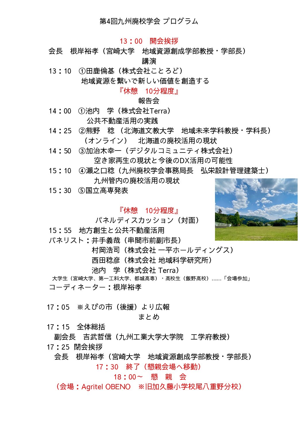 2025/6/6 本年度の九州廃校学会フォーラムの開催に向けて、Terra Agritelさんに全面的にご支援いただいて企画調整中です。詳細決定次第、公開いたします。